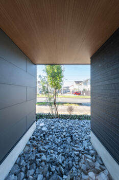 部屋自体は分かれていますが、ガラスの引戸で分けることで繋がりを持たせた雰囲気を残しつつ、院長が選ばれたデザインフィルムで目隠ししており患者様にとっても安心で落ち着きのある待合となっています。